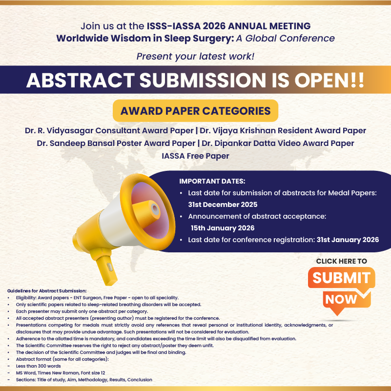 Warm greetings from the International Surgical Sleep Society (ISSS) and the Indian Association of Surgeons for Sleep Apnoea (IASSA)!